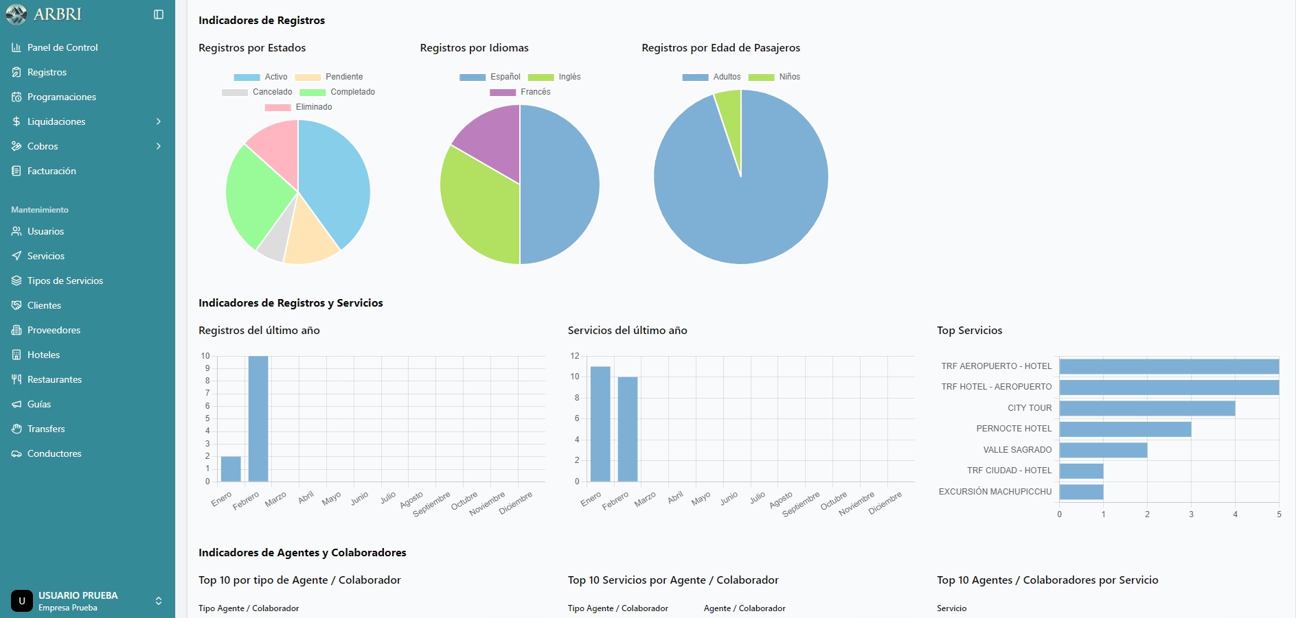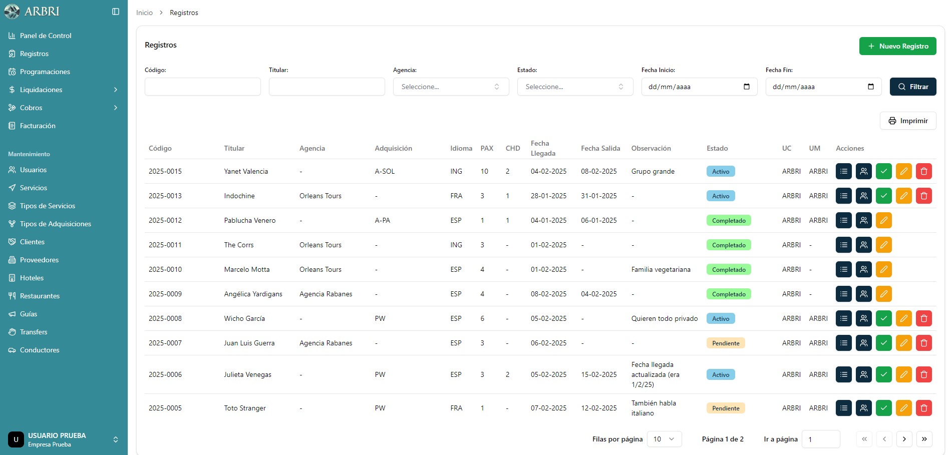 ARBRI es un sistema integral que cubre todo el ciclo operativo de agencias y operadores de turismo